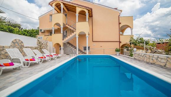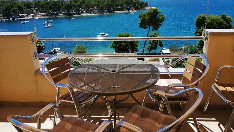 Die Unterkunft bietet Apartments zur Selbstverpflegung mit einem eigenen Balkon oder einer Terrasse, die Meerblick bieten. Ein Garten mit Grillmöglichkeiten steht zur Verfügung. WLAN und Parkiermöglichkeiten sind kostenlos.