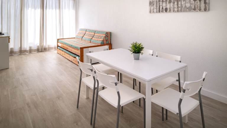 Das Apartmenthotel bietet verschiedene gastronomische Einrichtungen, darunter ein Buffetrestaurant mit mediterraner Küche sowie ein Café und eine Bar. Die Verpflegung kann als Halbpension oder Vollpension gewählt werden, mit einem abwechslungsreichen Frühstücks- und Abendbuffet sowie Mittagessen in Menüform. Zudem werden Picknickmöglichkeiten bereitgestellt.
