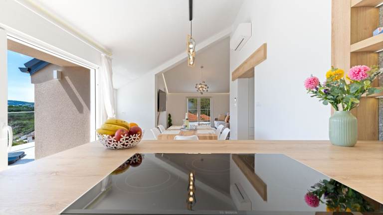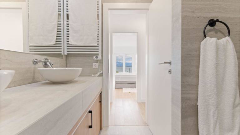 Die Ferienwohnung umfasst drei Schlafzimmer, ein Wohnzimmer und eine voll ausgestattete Küche mit Kühlschrank und Kaffeemaschine. Es stehen zwei Badezimmer mit Dusche und kostenlosen Pflegeprodukten zur Verfügung. Die Unterkunft bietet zudem einen Balkon mit Meerblick sowie Handtücher und Bettwäsche. Klimaanlage und Heizung sorgen für einen komfortablen Aufenthalt.