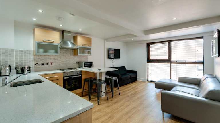 Die hochmodernen Print Works Apartments bieten Unterkünfte zur Selbstverpflegung in zwei beeindruckenden Gebäuden, die 91 m voneinander entfernt liegen. Sie verfügen über ein separates stilvolles Schlafzimmer, ein modernes eigenes Bad und einen Wohnbereich mit digitalem TV sowie kostenfreiem WLAN. Zudem gibt es einen 24-Stunden-Conciergeservice und sicheren Zugang zur Unterkunft.