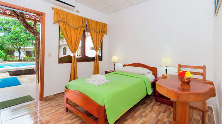 Die Zimmer sind mit einem Doppelbett und einem Sofabett ausgestattet, wobei Zustellbetten auf Anfrage verfügbar sind. Zu den Annehmlichkeiten gehören Hosenpresse, kostenloses WiFi und ein eigener Balkon oder Veranda mit Poolblick in ausgewählten Zimmern. Rollstuhlgerechte Zimmer mit barrierefreiem Badezimmer sind ebenfalls buchbar.