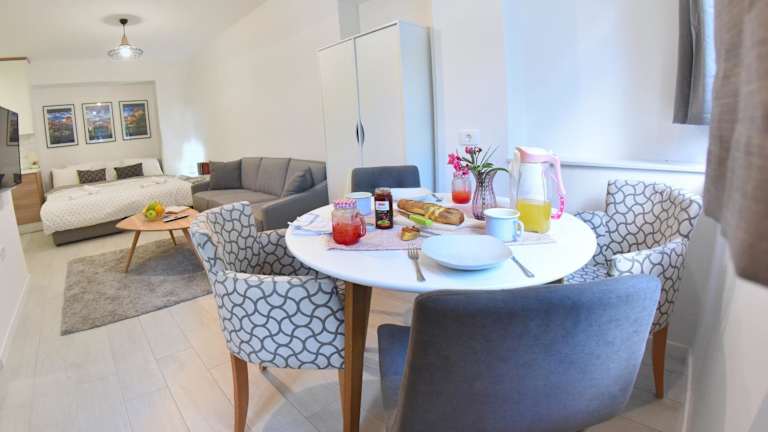 Die Apartments sind ausgestattet mit einer Klimaanlage, einer voll ausgestatteten Küche, einem Flachbild-TV und einem eigenen Badezimmer mit Dusche, kostenlosen Pflegeprodukten und einem Haartrockner. Weiterhin sind ein Kühlschrank, ein Geschirrspüler, ein Ofen sowie ein Wasserkocher vorhanden. Die Unterkunft bietet zudem kostenloses WLAN und einen kostenlosen Privatparkplatz.