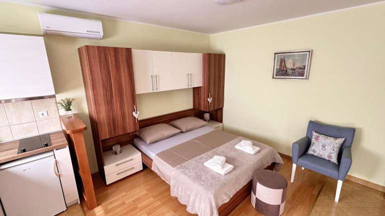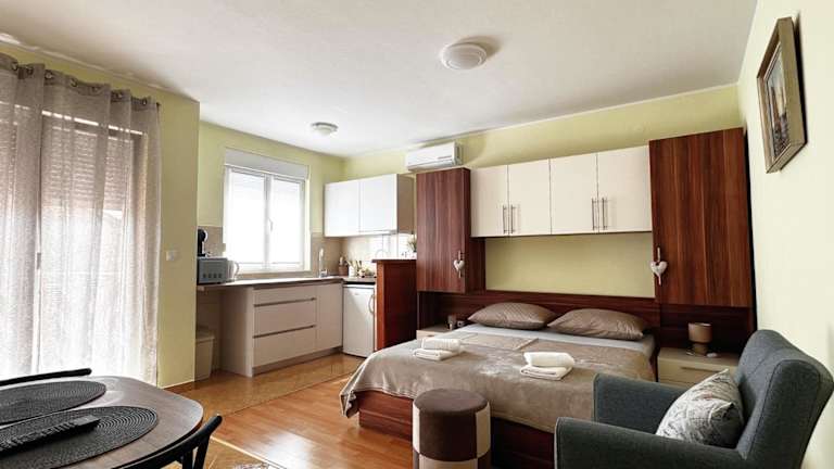 Die Apartments Vila Miranda befinden sich in Vodice, einer charmanten Stadt in der Region Sibenik-Knin. Die Lage ist ideal, da Sie in der Nähe des Imperial Beach und des Hangar Beach sind, wo Sie die Sonne und das Meer genießen können. Der Strand Male Vrulje ist weniger als 1 km von der Unterkunft entfernt und lädt zu entspannten Stunden am Wasser ein. Das Rathaus von Šibenik ist nur 12 km entfernt und einen Besuch wert. Der Flughafen Zadar ist etwa 64 km entfernt und bietet Ihnen eine bequeme Anreisemöglichkeit.