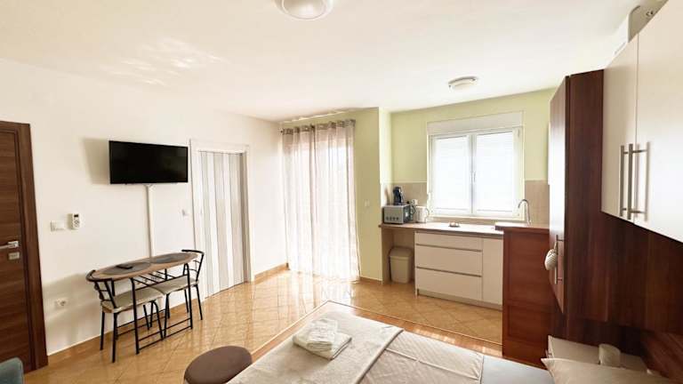Die Apartments Vila Miranda bieten komfortable Unterkünfte mit kostenfreiem WLAN und kostenfreien Privatparkplätzen. Jedes Apartment verfügt über einen Balkon, wo Sie den Blick auf die Umgebung genießen können. Im Innenbereich finden Sie einen gemütlichen Sitzbereich und einen Flachbild-Sat-TV für Ihre Unterhaltung. Die voll ausgestattete Küche bietet Ihnen alles, was Sie für die Zubereitung Ihrer Mahlzeiten benötigen, einschließlich Kühlschrank, Mikrowelle, Kochfeld, Kaffeemaschine und Wasserkocher. Das private Badezimmer ist mit einer Dusche und kostenlosen Pflegeprodukten ausgestattet.