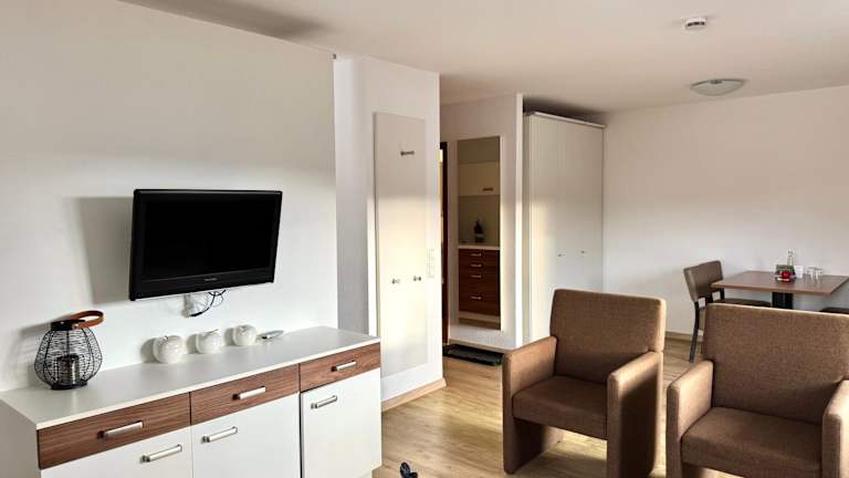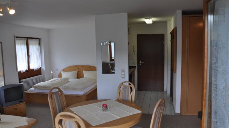 Ein Frühstücksbuffet kann im nahegelegenen Hotel Alemannenhof gebucht werden. Zudem sind spezielle Speisen für besondere Ernährungsbedürfnisse auf Anfrage erhältlich. Keine weiteren Informationen zur Verpflegung sind vorhanden.