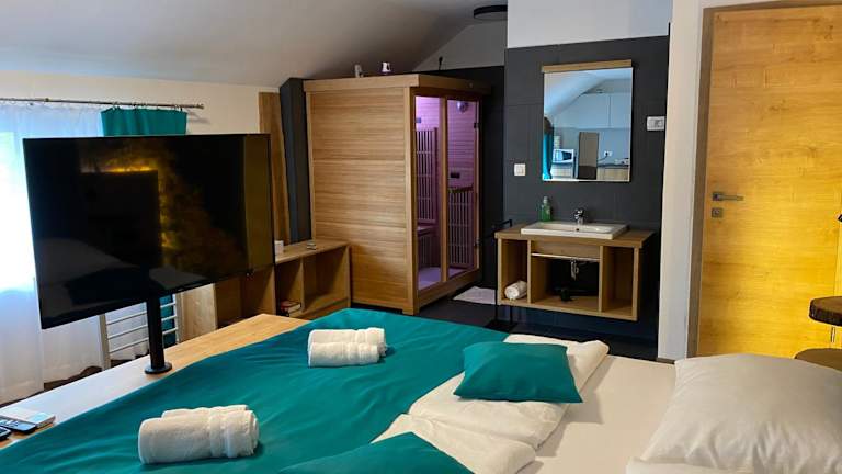 Das Apartments with Private Saunas - WELLNESS Gobi ist eine gemütliche Unterkunft, die kostenloses WLAN und einen kostenlosen Privatparkplatz bietet. Gäste können die Sauna nutzen und sich auf der Terrasse entspannen. Die Unterkunft wird von einem privaten Gastgeber geführt und ist Nichtraucher. Es gibt auch Familienzimmer.