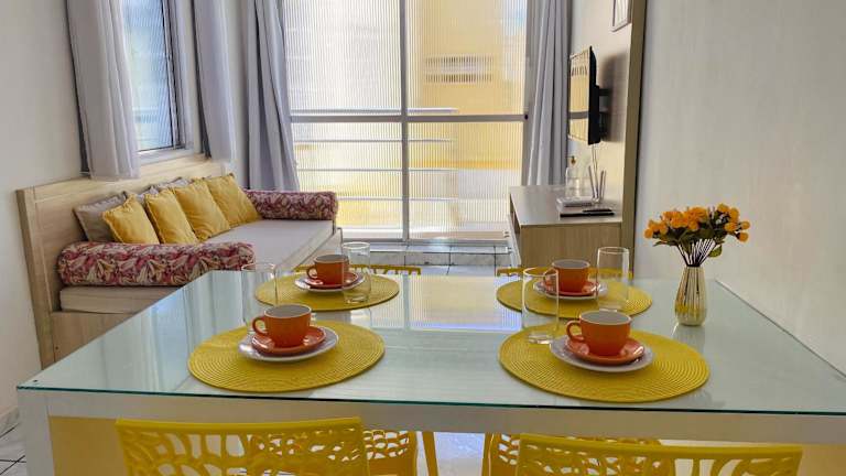 Apê em Guest House na Praia do Sul bietet eine einladende Ferienwohnung mit Garten, kostenlosem Wifi und einer 24-Stunden-Rezeption. Die Unterkunft ist für Gäste bequem zugänglich und bietet eine Gemeinschaftslounge für gesellige Zusammenkünfte. Hier sind sowohl Haustiere erlaubt als auch verschiedene Parkiermöglichkeiten vorhanden.