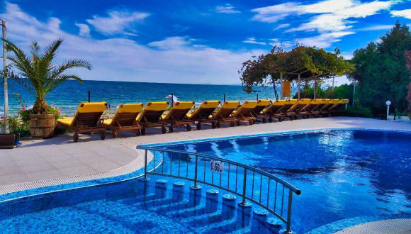 Das Aphrodite Beach Hotel in Nessebar ist der ideale Ort für einen erholsamen Urlaub am Meer. Genießen Sie den Meerblick, entspannen Sie am Außenpool und lassen Sie sich mit köstlicher bulgarischer Küche verwöhnen. Die Lage des Hotels ermöglicht es Ihnen, die Altstadt von Nessebar zu Fuß zu erkunden und auch das beliebte Sunny Beach ist nur wenige Kilometer entfernt. Das freundliche Personal und das kostenlose WLAN runden das Angebot ab.