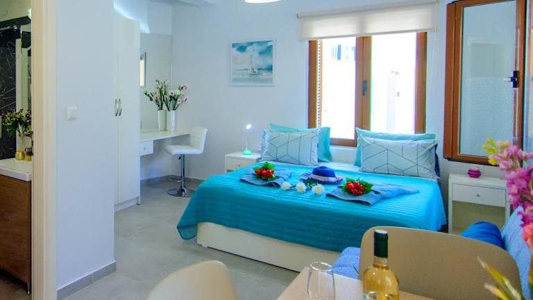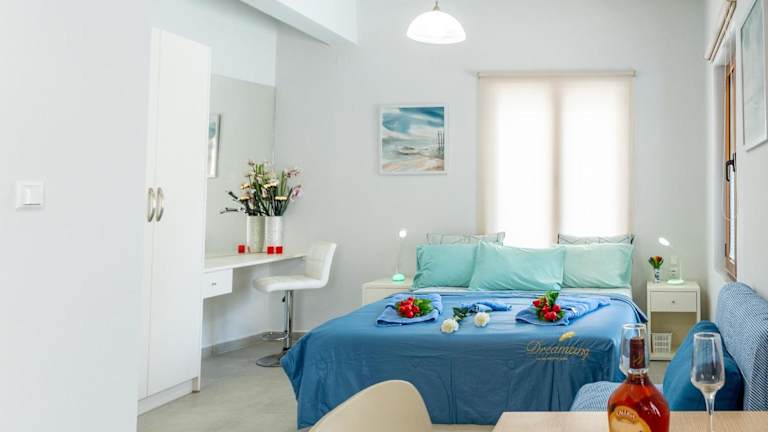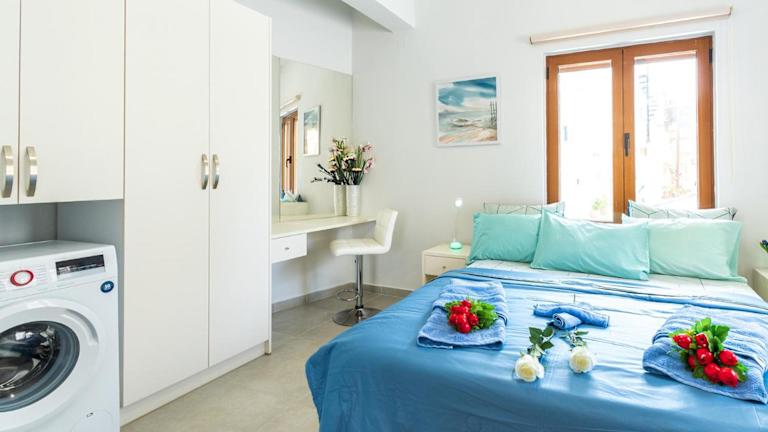 Apolafsi Apartments 1New with kitchen ist eine moderne Ferienwohnung, die direkt am Strand liegt. Die Unterkunft bietet eine Terrasse und ist klimatisiert. Es handelt sich um eine Nichtraucherunterkunft, die keine Junggesellenabschiede oder ähnliche Feiern erlaubt. Die Mindestalter für den Check-in und für Gäste beträgt 18 Jahre. Haustiere sind nicht gestattet.