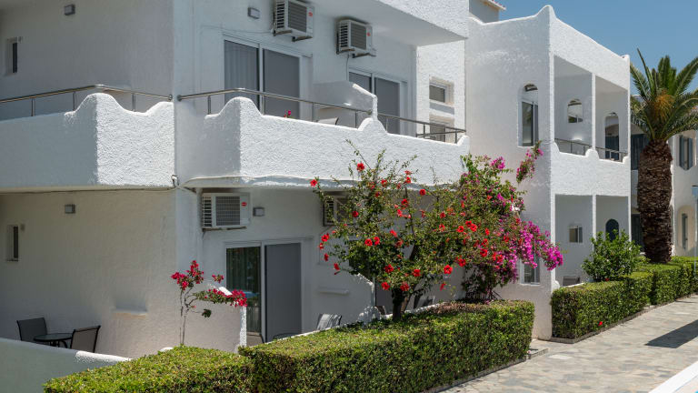 Die kleine Anlage mit nur 34 Zimmern verfügt über eine Lobby mit Rezeption (12 Stunden besetzt), Gepäckraum und eine Frühstückslounge. Im Gartenbereich befindet sich der Swimmingpool mit Sonnenschirmen und Liegen (kostenlos, am öffentlichen Strand gegen Gebühr erhältlich), eine Pool-/Snackbar sorgt für Erfrischungen und das leibliche Wohl. Ab Sommer 2024 frisch renovierter Poolbereich mit neuen Sonnenliegen und Schirmen (kostenlos) und renovierter Pool-/Snackbar sowie ein neu gestalteter Gartenbereich. Badehandtücher sind gegen Gebühr erhältlich.