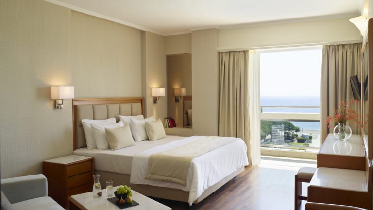 Die geschmackvoll eingerichteten Doppelzimmer bieten Kühlschrank, Klimaanlage , Mietsafe (gegen Gebühr), WLAN, SAT-TV, Telefon, Bad mit Badewanne oder Dusche, WC, Föhn und Balkon mit seitlichem Meerblick.