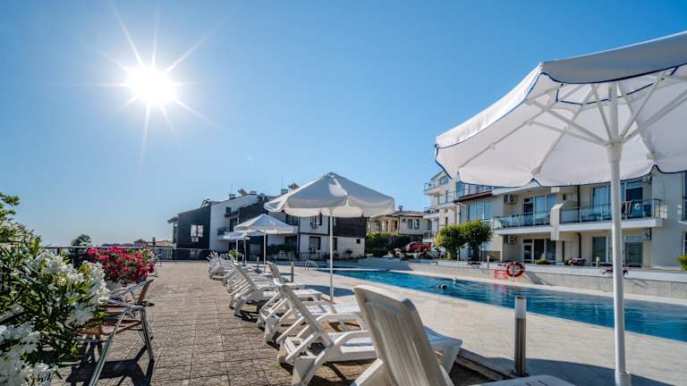 Das Apolon Complex befindet sich an der Schwarzmeerküste, etwa 2,5 km vom Zentrum von Sozopol entfernt. In der Nähe befinden sich verschiedene Strände, darunter der 800 m entfernte Strand Budjaka und der 3 km entfernte Sandstrand Kavaci. Restaurants und Geschäfte sind am 1,5 km entfernten Strand New Town zu finden. Burgas liegt 30 Fahrminuten entfernt.