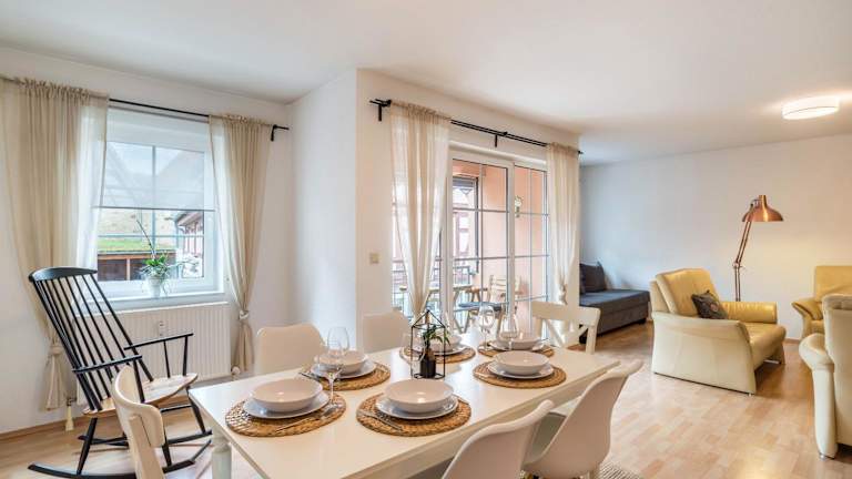 Die Ferienwohnung verfügt über 2 Schlafzimmer, ein Wohnzimmer, eine gut ausgestattete Küche sowie ein Badezimmer mit Dusche und Badewanne. Ausserdem stehen ein Satelliten TV und Gartenmöbel zur Verfügung.