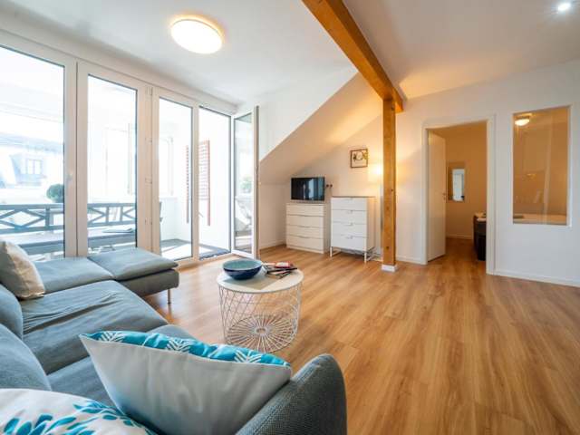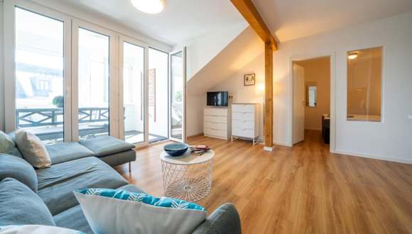 Die Ferienwohnung besteht aus einem Schlafzimmer, einem Wohnzimmer, einer voll ausgestatteten Küche mit Kühlschrank und Kaffeemaschine sowie einem Badezimmer mit Dusche und Haartrockner. Handtücher und Bettwäsche können gegen Aufpreis bereitgestellt werden. Die Räume sind Nichtraucherzimmer und die Unterkunft entspricht den Richtlinien zur Hygiene.
