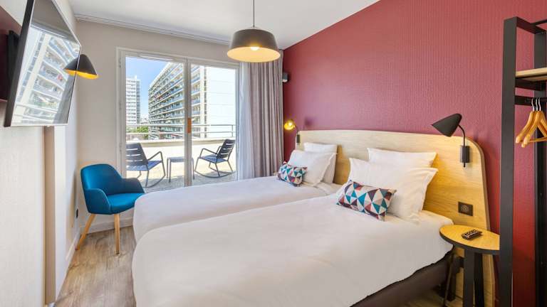 Die Zimmer sind klimatisiert und bieten eine individuell regulierbare Heizung. Gäste können Stadtblick von Balkon oder Terrasse geniessen. Zur Ausstattung gehören ein Doppelbett oder ein Queensize-Bett, ein Schreibtisch und eine Kochnische mit Kühlschrank, Mikrowelle und Geschirrspüler. Für zusätzlichen Komfort sind eine Waschmaschine und ein Bügelset vorhanden. TV-Gerät mit Satellitenempfang, Telefon mit Direktwahl sowie kostenfreies Wifi runden das Angebot ab. Die Badezimmer sind mit Dusche und Badewanne, Haartrockner sowie Kosmetikartikeln ausgestattet. Rollstuhlgerechte Zimmer sind buchbar.