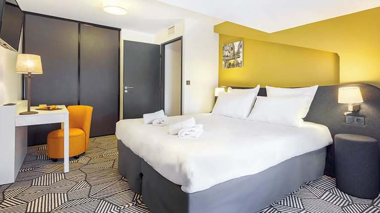 Dieses Hotel liegt mitten im Zentrum von Nîmes, nur 1 Gehminute von der Arena entfernt. Der Flughafen Nîmes-Alès-Camargue-Cévennes befindet sich etwa 12 km entfernt. In der Umgebung gibt es viele Geschäfte, die zum Schlendern und Stöbern einladen.