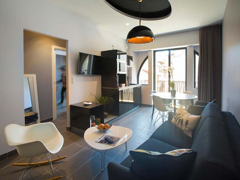 Die klimatisierten Zimmer verfügen über ein eigenes Badezimmer, einen Flachbild-TV, einen Schreibtisch, eine ausgestattete Küche mit Kühlschrank, Geschirrspüler und Ofen, sowie eine Kaffeemaschine und einen Wasserkocher. Alle Zimmer haben zudem einen Balkon und bieten Stadtblick. Schallisolierte Zimmer sind ebenfalls vorhanden.