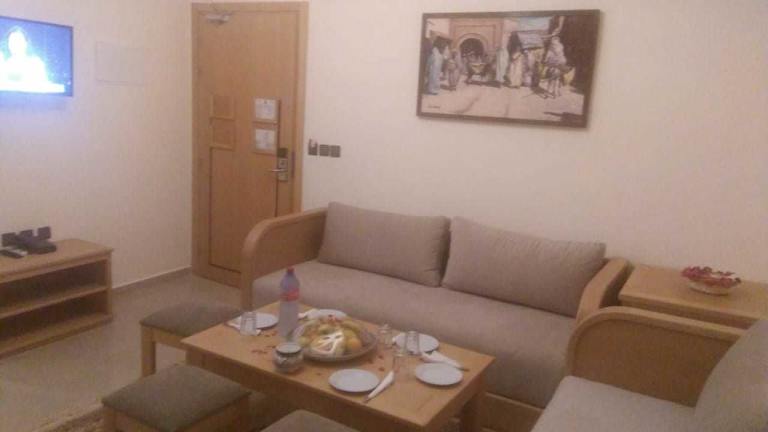 Das Appart-Hotel SOFINES befindet sich in Agadir direkt am Strand, der etwa 12 Kilometer entfernt ist. Die Umgebung bietet zahlreiche Einkaufsmöglichkeiten, darunter einen Supermarkt und weitere Geschäfte.