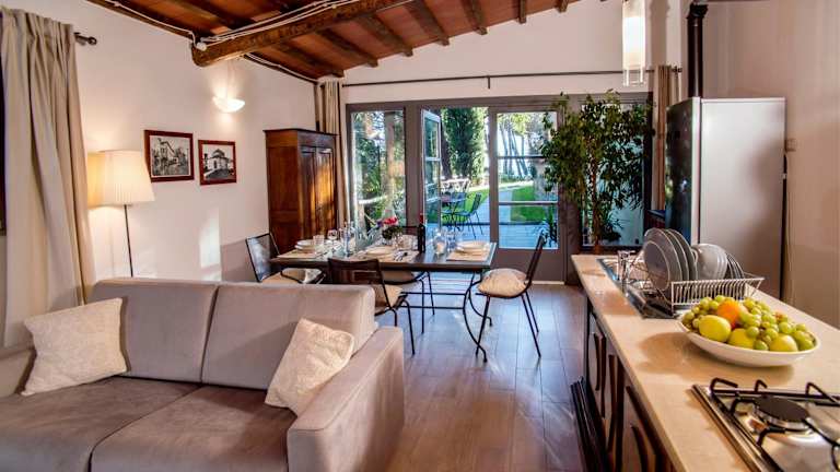 Die Unterkünfte sind mit einem Sitzbereich und einem Flachbild-TV ausgestattet. Eine vollwertige Küche mit Kühlschrank, Geschirrspüler, Ofen, Herdplatte sowie Kaffeemaschine sorgt für die nötige Bequemlichkeit. Zudem stehen ein eigenes Badezimmer mit Bidet und Haartrockner zur Verfügung. Gästen stehen Handtücher und Bettwäsche zur Verfügung.