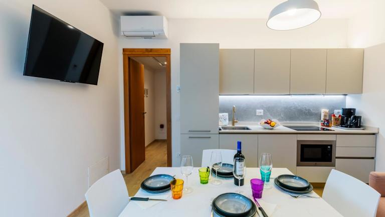Die Apartments im Le Rasole sind mit einer Küchenzeile ausgestattet, die über einen Kühlschrank und eine Mikrowelle verfügt. Bettwäsche und Handtücher können selbst mitgebracht oder gegen Gebühr in der Unterkunft ausgeliehen werden.