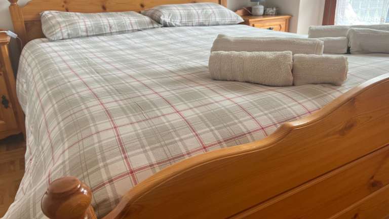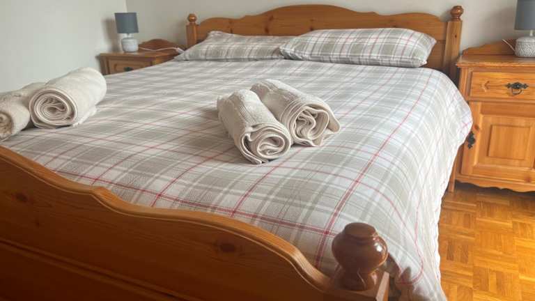 Die Unterkunft hat 2 Schlafzimmer, 1 Badezimmer, Bettwäsche, Handtücher sowie einen Flachbild-TV angeboten. Zudem verfügt die Ferienwohnung über einen Essbereich, eine voll ausgestattete Küche und eine Terrasse mit Blick auf die Berge.