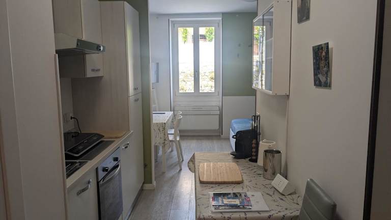 Die Ferienwohnung ist klimatisiert und umfasst ein Schlafzimmer sowie ein Badezimmer, das mit einem Bidet, einer Dusche und einem Haartrockner ausgestattet ist. Die Küche ist komplett eingerichtet mit Kühlschrank, Ofen, Herdplatte, Kaffeemaschine und Wasserkocher.