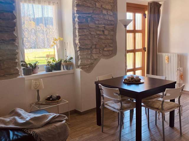 Die Ferienwohnung besteht aus 2 Schlafzimmern, einem Wohnzimmer und einer voll ausgestatteten Küche mit Kühlschrank. Ein Badezimmer mit Bidet und Haartrockner ist ebenfalls vorhanden. Zudem gibt es einen Flachbild-TV. Die Einrichtung bietet Bequemlichkeiten für einen heimenlichen Aufenthalt.