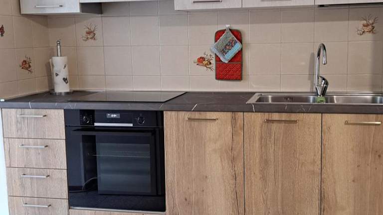 Die Ferienwohnung ist ausgestattet mit 2 Schlafzimmern, 1 Badezimmer, Bettwäsche, Handtüchern, einem TV, einer voll ausgestatteten Küche und einem Balkon mit Blick auf die Berge.