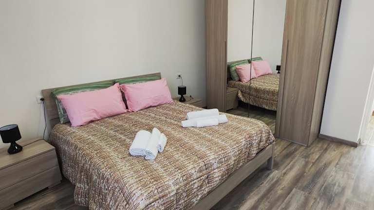 Die Ferienwohnung besteht aus 3 Schlafzimmern und einem Wohnzimmer, das mit einem Flachbild-TV ausgestattet ist. Zusätzlich gibt es eine voll ausgestattete Küche und ein Badezimmer. Die Bettwäsche, Handtücher und Wäsche werden nach den Richtlinien der örtlichen Behörden gewaschen.