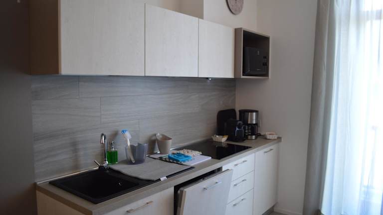 Die Ferienwohnung besteht aus einem Schlafzimmer, einem gemütlichen Wohnzimmer und einer voll ausgestatteten Küche mit Kühlschrank und Kaffeemaschine. Das Badezimmer verfügt über ein Bidet und eine Dusche, und Handtücher sowie Bettwäsche werden bereitgestellt.