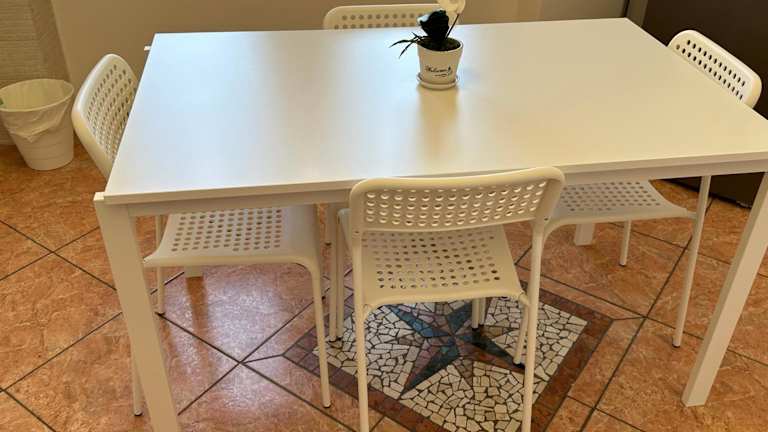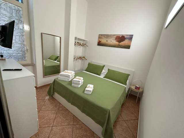 Die Ferienwohnung verfügt über zwei Schlafzimmer, ein Wohnzimmer sowie eine voll ausgestattete Küche mit Kühlschrank und Kaffeemaschine. Ein Badezimmer mit Bidet und Dusche ist ebenfalls vorhanden. Handtücher und Bettwäsche werden zur Verfügung gestellt.