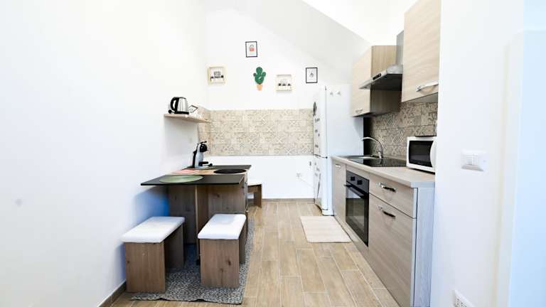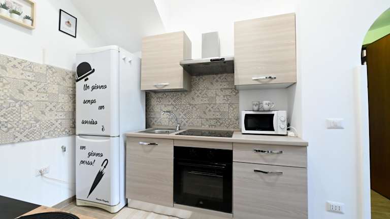 Die Ferienwohnung bietet ein Schlafzimmer, einen Flachbild-TV mit Kabelkanälen sowie eine gut ausgestattete Küchenzeile mit Kühlschrank und Ofen. Des Weiteren stehen ein Badezimmer mit einem Bidet, Handtücher und Bettwäsche zur Verfügung.