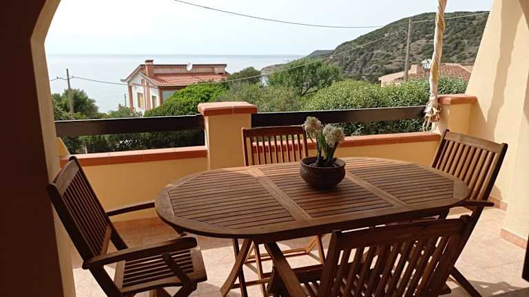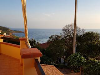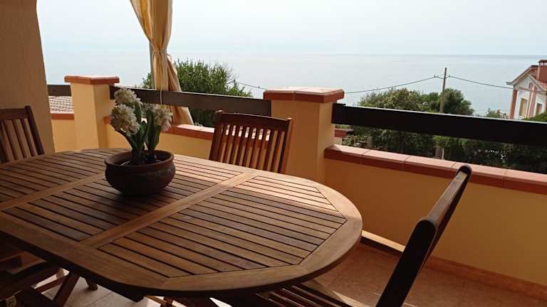 Das Appartamento Con Splendida Vista Mare bietet Übernachtungsmöglichkeiten direkt am Strand. Die Unterkunft ist umgeben von einem Garten und bietet Grillmöglichkeiten. Es ist eine heimelige Ferienwohnung mit Blick auf das Meer.