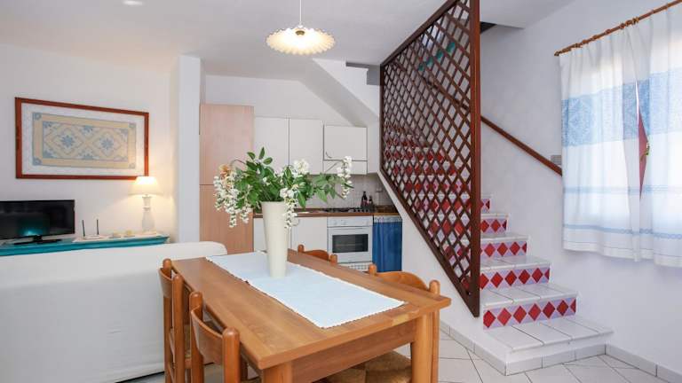 Das Ferienhaus umfasst 2 Schlafzimmer und 1 Badezimmer. Ausgestattet ist es mit Bettwäsche, Handtüchern, sowie einem TV mit Satellitenkanälen. Die voll ausgestattete Küche bietet Bequemlichkeit für Selbstversorger. Ein Balkon mit Meerblick rundet das Angebot der Zimmer ab.