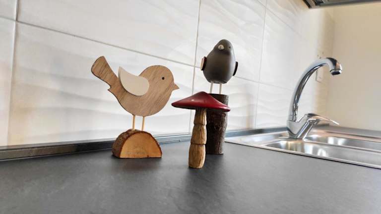 Das Ferienhaus umfasst ein Schlafzimmer und bietet Platz für bis zu 2 Personen. Die gut ausgestattete Küche beinhaltet einen Kühlschrank, einen Geschirrspüler und eine Herdplatte. Zusätzlich sind ein Badezimmer mit Bidet und Dusche sowie ein Balkon vorhanden. Handtücher und Bettwäsche werden bereitgestellt.