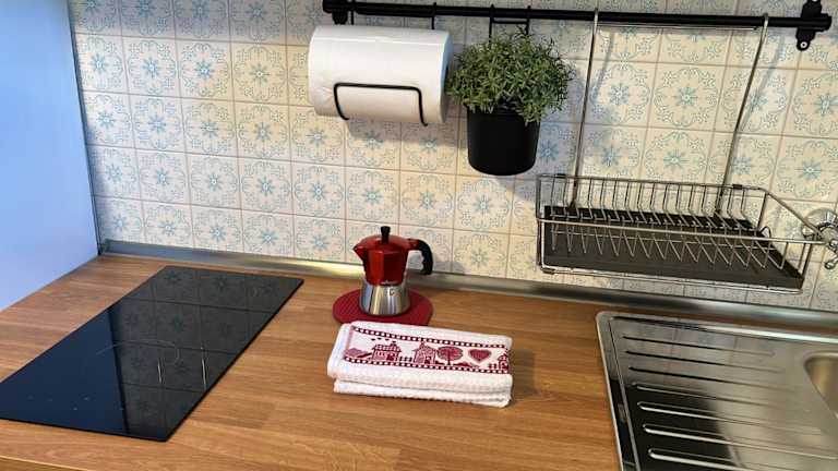 Die Unterkunft beinhaltet eine Küchenzeile mit einem Kühlschrank und Geschirrspüler für die Selbstverpflegung. Handtücher und Bettwäsche können gegen Aufpreis bereitgestellt werden.
