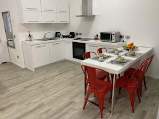 Die Ferienwohnung besteht aus einem Schlafzimmer, einem Wohnzimmer sowie einer voll ausgestatteten Küche mit Kühlschrank und Kaffeemaschine. Ein Badezimmer mit Bidet und Dusche ist ebenfalls vorhanden. In der Unterkunft werden Handtücher und Bettwäsche angeboten.