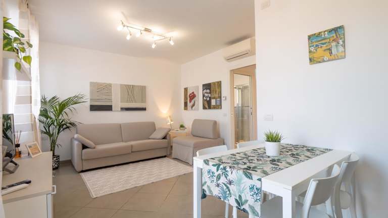 Die Ferienwohnung ist klimatisiert und besteht aus 1 Schlafzimmer, einem Wohnzimmer sowie einem Badezimmer mit einem Bidet und einer Dusche. Handtücher und Bettwäsche werden bereitgestellt.