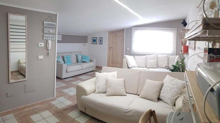Das Appartamento mansardato Anda&Torra bietet Übernachtungsmöglichkeiten in einem heimeligen Ambiente. Die Ferienwohnung besticht durch eine Terrasse und einen Balkon mit Stadtblick sowie Blick auf das Meer und die Berge. Kostenloses Wifi steht zur Verfügung.