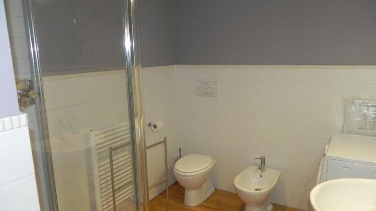 Die Ferienwohnung umfasst ein Schlafzimmer und ein Badezimmer, das mit einem Bidet, einer Dusche sowie kostenlosen Pflegeprodukten ausgestattet ist.