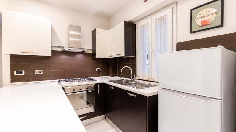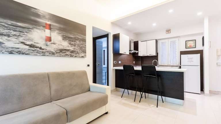 Die Ferienwohnung besteht aus einem Schlafzimmer, einem Wohnzimmer und einer voll ausgestatteten Küchenzeile mit Kühlschrank. Das Badezimmer ist mit einem Bidet sowie kostenlosen Pflegeprodukten ausgestattet. Handtücher und Bettwäsche werden zur Verfügung gestellt.