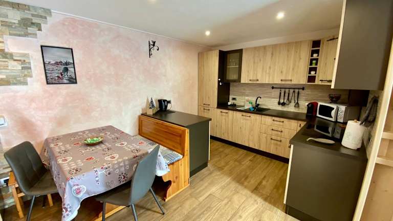 Die Ferienwohnung besteht aus 2 Schlafzimmern und 1 Badezimmer. Zur Ausstattung gehören Bettwäsche, Handtücher, ein Flachbild-TV, ein Essbereich, eine voll ausgestattete Küche sowie eine Terrasse mit Blick auf die Berge.
