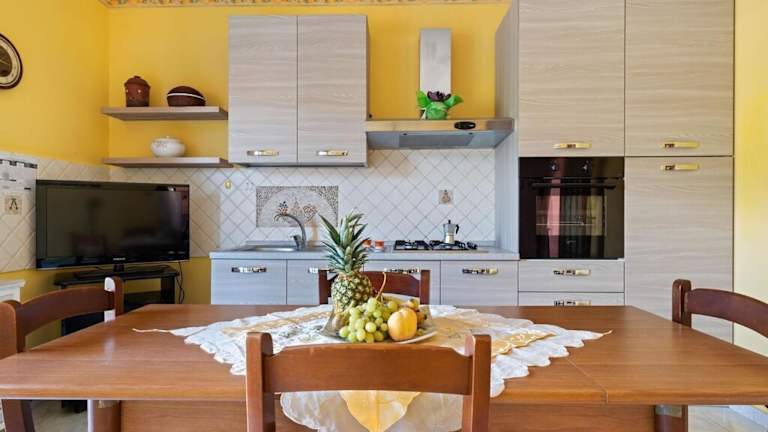 Die Ferienwohnung besteht aus 3 Schlafzimmern, einem Wohnzimmer und einer voll ausgestatteten Küche mit Kühlschrank und Wasserkocher. Zudem ist ein Badezimmer mit Bidet und Dusche vorhanden. Handtücher und Bettwäsche werden bereitgestellt.