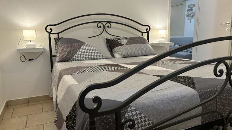 Die Ferienwohnung verfügt über ein Schlafzimmer, ein Wohnzimmer und eine voll ausgestattete Küche mit Kühlschrank sowie Kaffeemaschine. Das Badezimmer ist mit einem Bidet und einer Dusche ausgestattet. Handtücher und Bettwäsche werden bereitgestellt.
