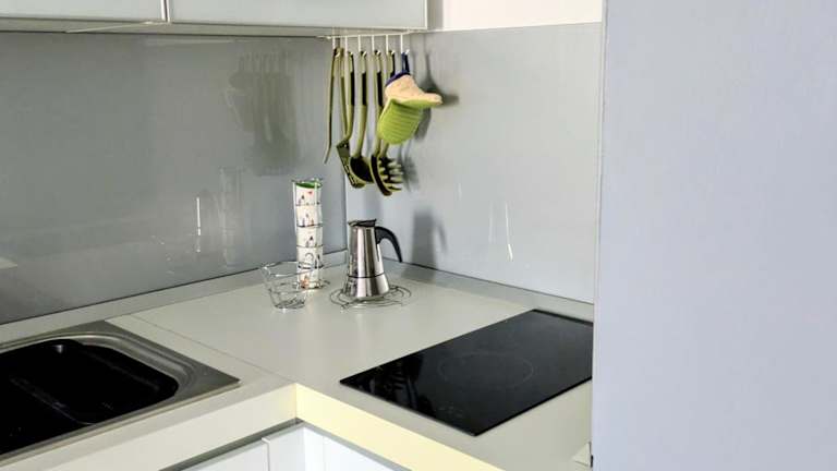Die Ferienwohnung verfügt über ein Schlafzimmer, ein Wohnzimmer sowie eine voll ausgestattete Küche mit Kühlschrank. Des Weiteren gibt es ein Badezimmer mit Bidet und Haartrockner. Handtücher und Bettwäsche werden bereitgestellt, und die Wohnung ist klimatisiert.