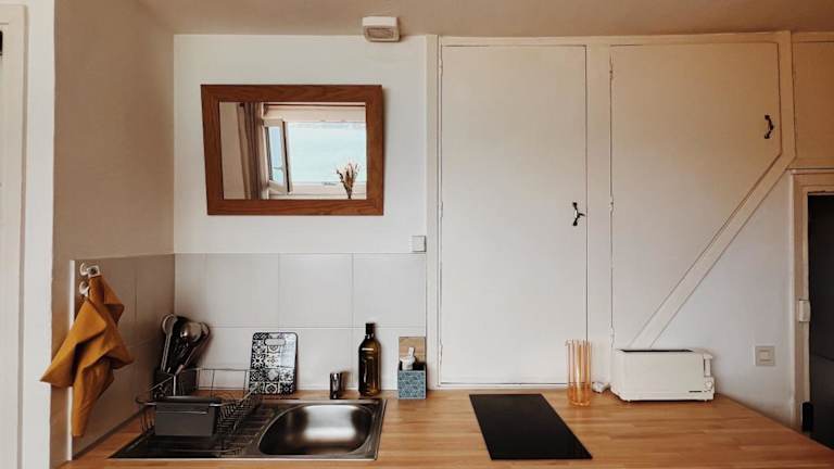 Die Unterkunft verfügt über eine voll ausgestattete Küche mit Kühlschrank, Ofen und Waschmaschine, sodass sich die Gäste selbst versorgen können. Keine Informationen über Verpflegungsmöglichkeiten vor Ort.