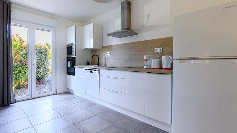 Die Ferienwohnung umfasst zwei Schlafzimmer, ein Wohnzimmer sowie eine gut ausgestattete Küche, die unter anderem mit einem Kühlschrank und einem Geschirrspüler ausgestattet ist. Außerdem stehen ein Badezimmer mit Dusche sowie eine Terrasse und Gartenblick zur Verfügung. Handtücher und Bettwäsche werden bereitgestellt. Die Unterkunft ist mit WLAN ausgestattet.