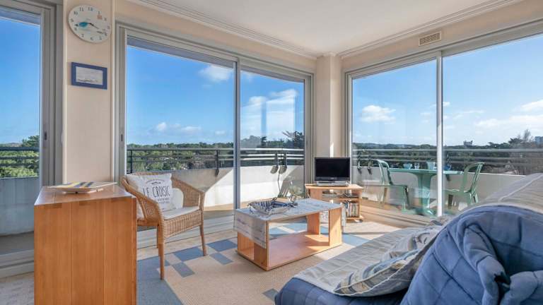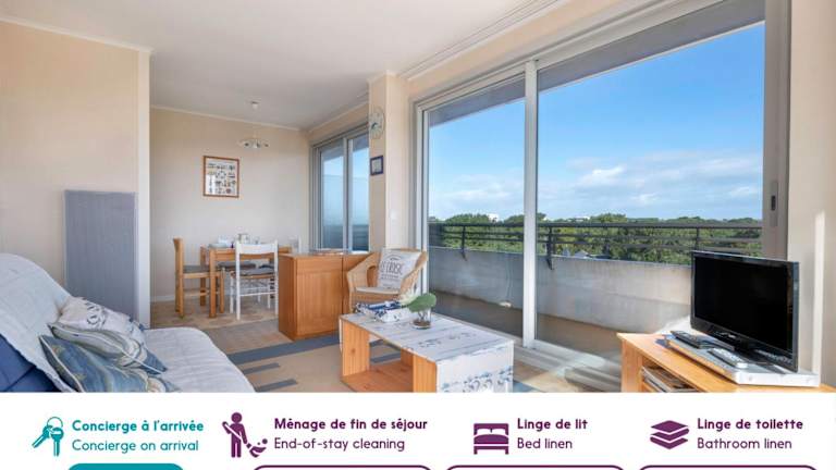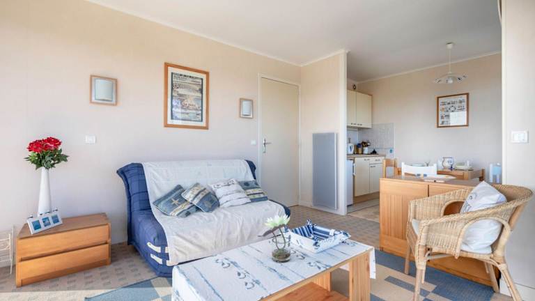 Das Appartement à 150m de la plage ist eine gemütliche Ferienwohnung direkt am Strand mit Balkon und kostenfreier Parkiermöglichkeit. Die Lage ermöglicht einfachen Zugang zu strandnahen Aktivitäten.
