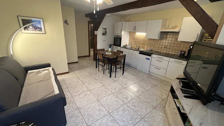 Das Appartement beinhaltet 1 Schlafzimmer, ein Wohnzimmer und eine voll ausgestattete Küche mit Kühlschrank und Kaffeemaschine. Das Badezimmer ist mit einer Dusche und einem Haartrockner ausgestattet. Handtücher und Bettwäsche werden bereitgestellt.
