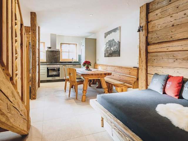 Die Ferienwohnung verfügt über ein Schlafzimmer, ein Wohnzimmer sowie eine gut ausgestattete Küche mit einem Kühlschrank und Geschirrspüler. Weitere Annehmlichkeiten sind ein Flachbild-TV und ein Badezimmer mit Dusche. Handtücher und Bettwäsche werden angeboten. Die Terrasse bietet einen schönen Bergblick.